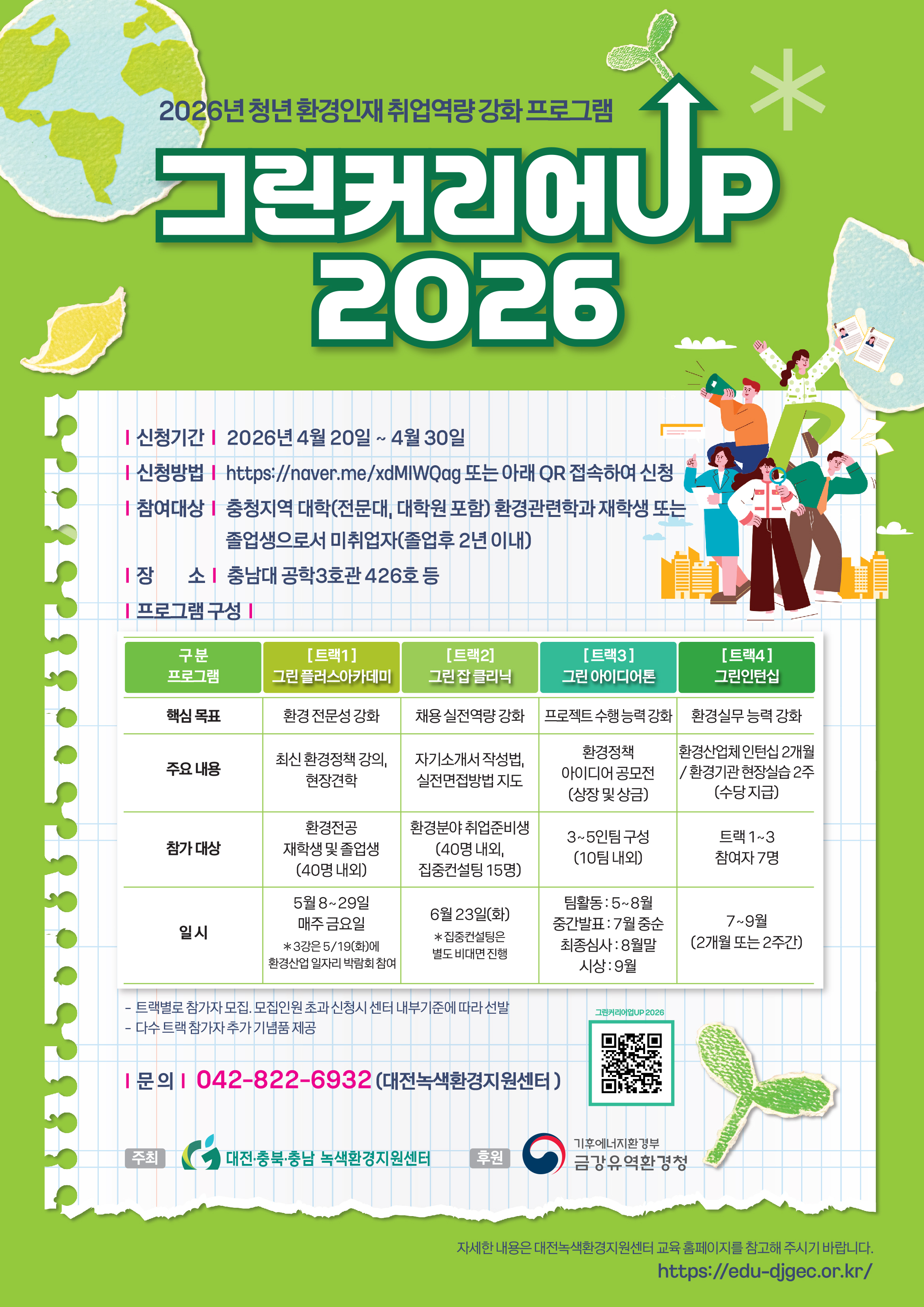 대전, 충북, 충남녹색환경지원센터에서는 '2026년 청년 환경인재 취업역량 강화 프로그램'